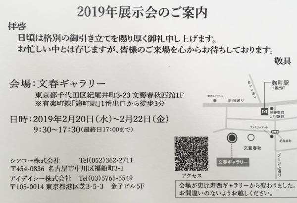 会場は、文春ギャラリー 東京都千代田区紀尾井町3-23 文藝春秋西館1F に変更になっております。 麹町駅が一番近い他、四谷駅、永田町駅、半蔵門駅からでも歩いてこられる距離です。