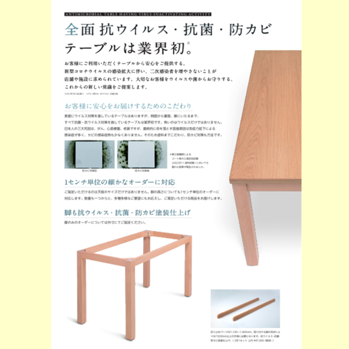 詳しくは、→ 抗ウィルス抗菌防カビテーブル天板