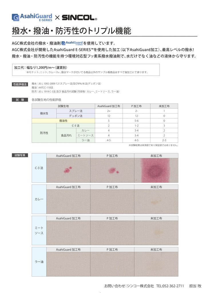 撥水加工/發油加工/防汚加工を承っております。